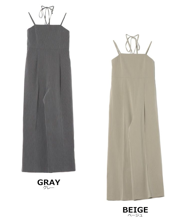 マニッシュなイメージの、ポリエステル×レーヨンのピンストライプ素材を採用。