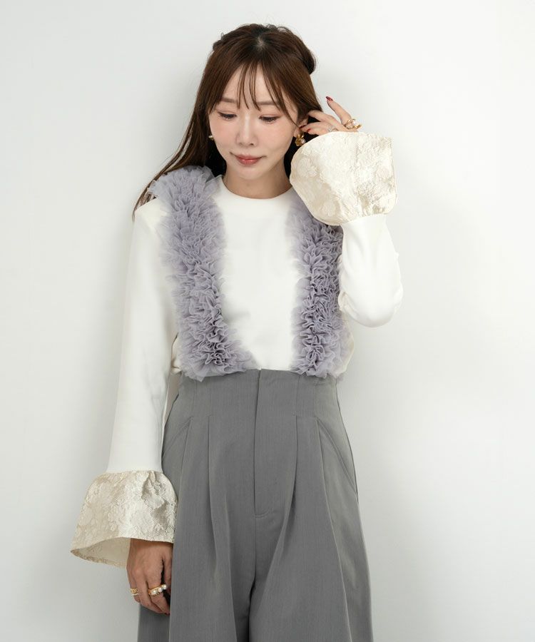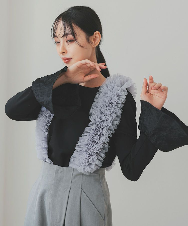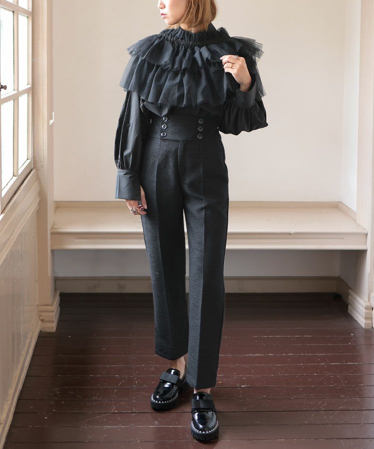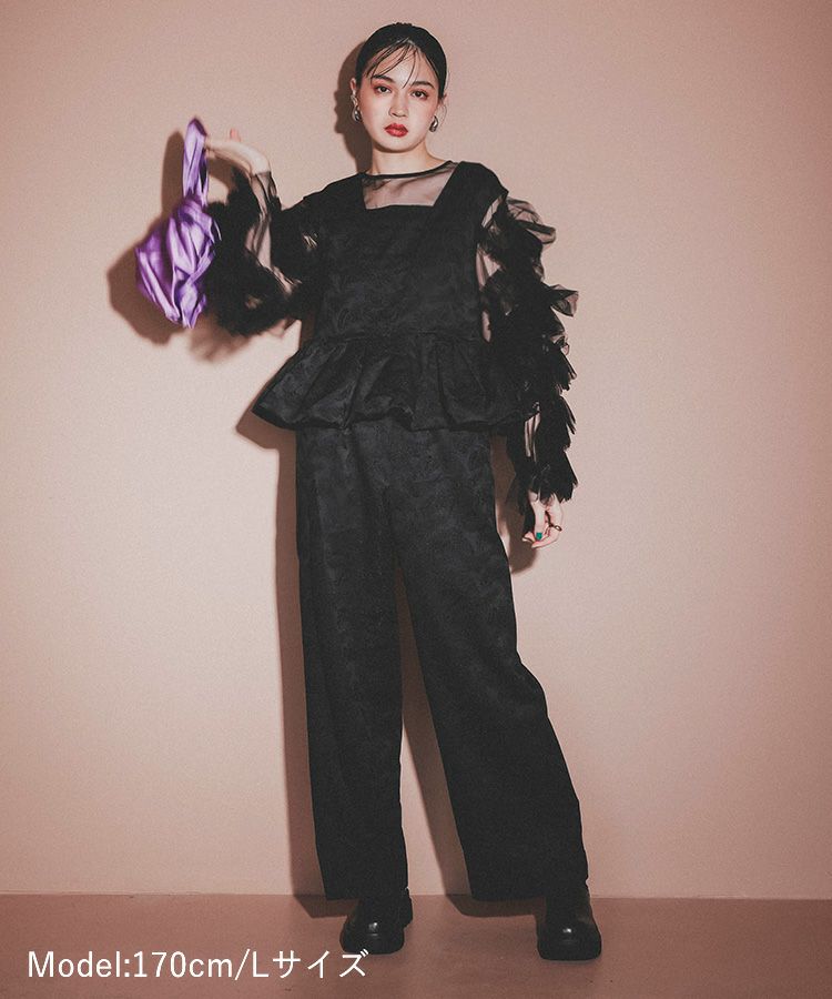他の画像を見る Donoban 【Maki×Donobanコラボ】 チュールフリルサスペ付きハイウエストワイドパンツ[C] インスタフォロー ¥ 13,200 ¥ 6,600 税込 お気に入りに登録する