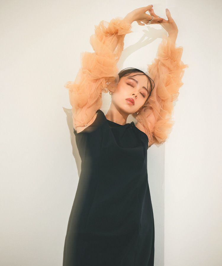 大人気の「decorative tulle tops」と同じチュールを採用し、ハリ感と柔らかさの絶妙なバランスで、たっぷりなボリュームフリルでも柔らかな着心地。