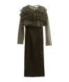 トップスのタフタがマットなので、光沢感のあるワンピースにしました。