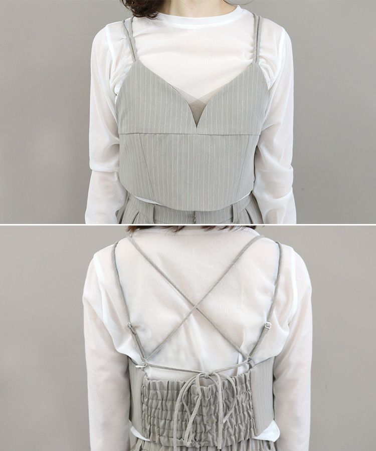 ビスチェは肩紐をクロスさせたり、丸カンに結んで垂らしたりと、アレンジ次第で着こなしに変化をつけられます。