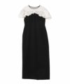 光沢糸を織り交ぜたジャカード素材が上品な華やかさを演出し、無地サテンのアクセントが洗練された印象をプラスする、ユニークなフォルムのマーメイドドレス。