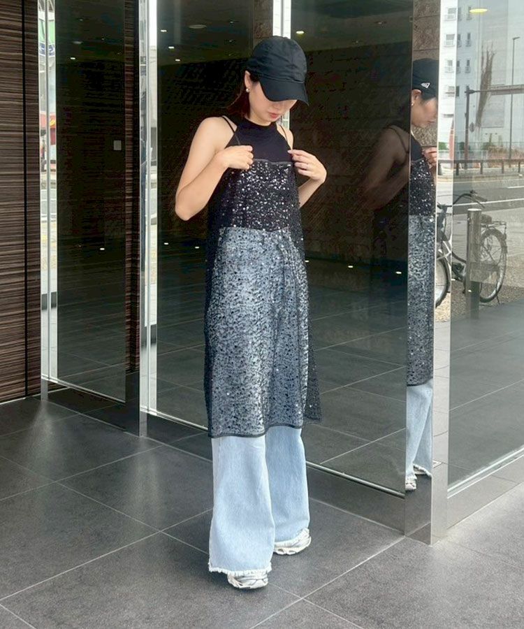 シンプルなワンピースやオールインワンに一点投入してレイヤードするだけで一気に特別感のあるスタイリングに。