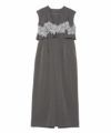 ビスチェには、オリジナル刺繍レースをアシンメトリーにあしらい、モード感の中にも華やかさをプラス。