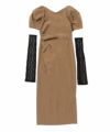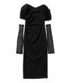 レースアームドレープドレス