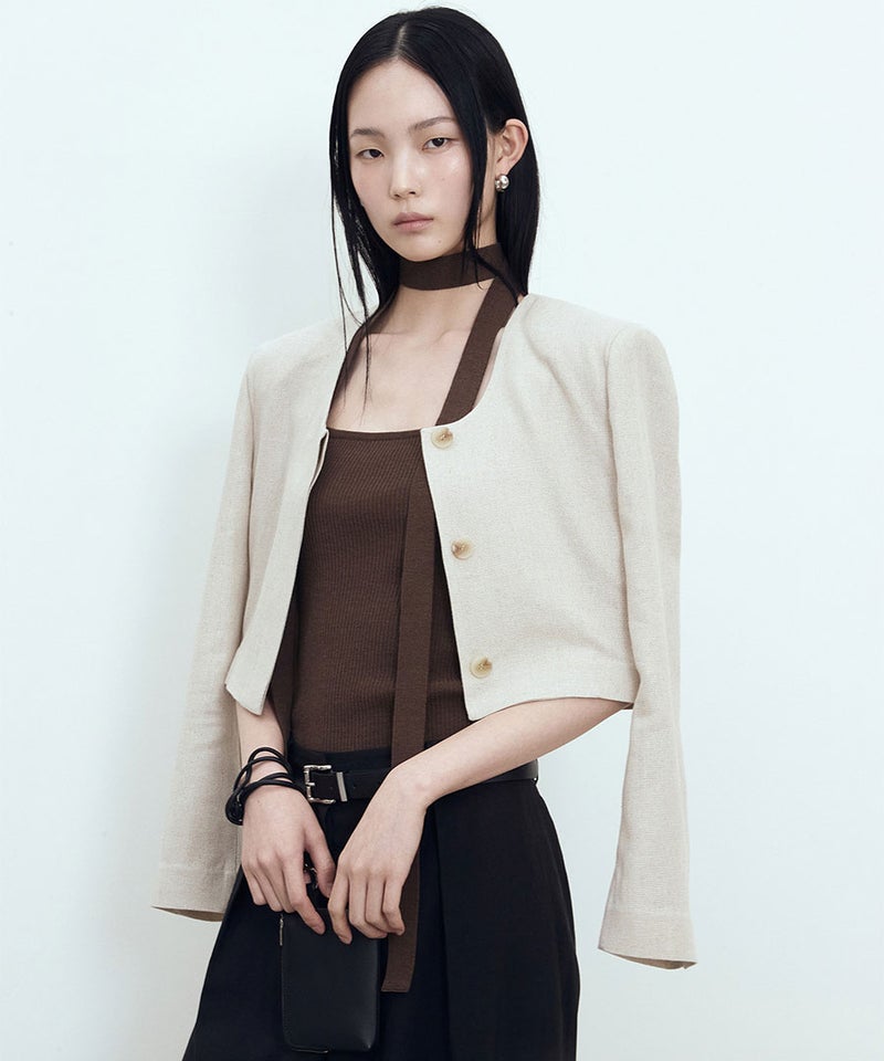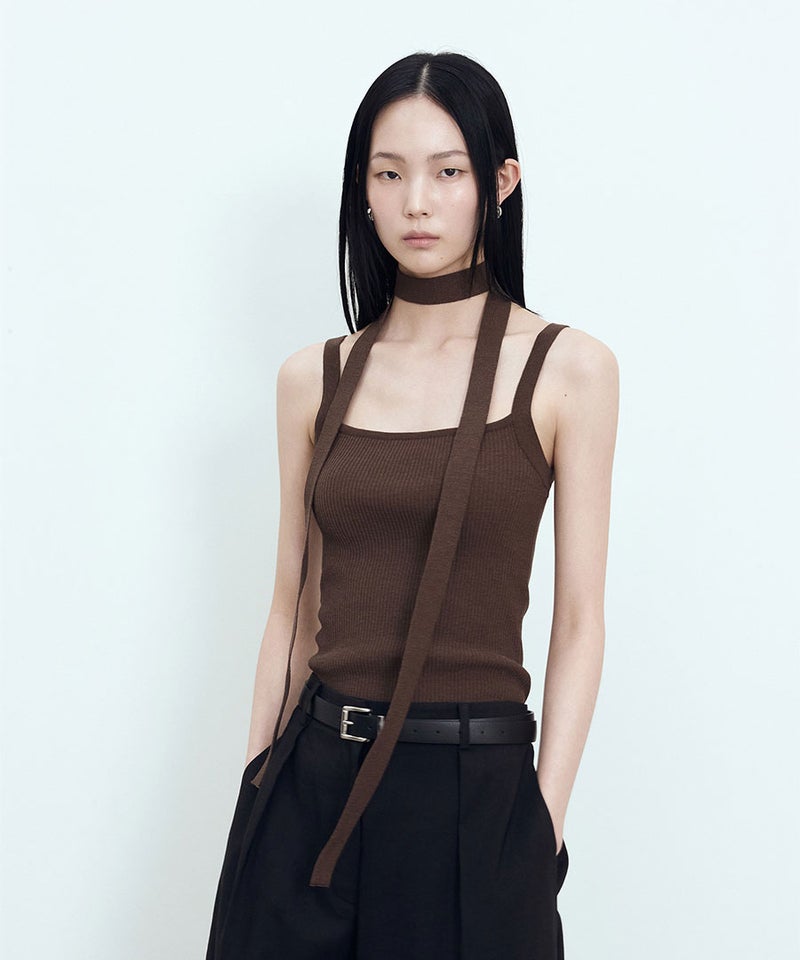 鎖骨ラインを自然に表すスクエアネックデザインでフェミニンなムードを生かし、単独着用するだけでほのかなポイントを加えることができるアイテムです。