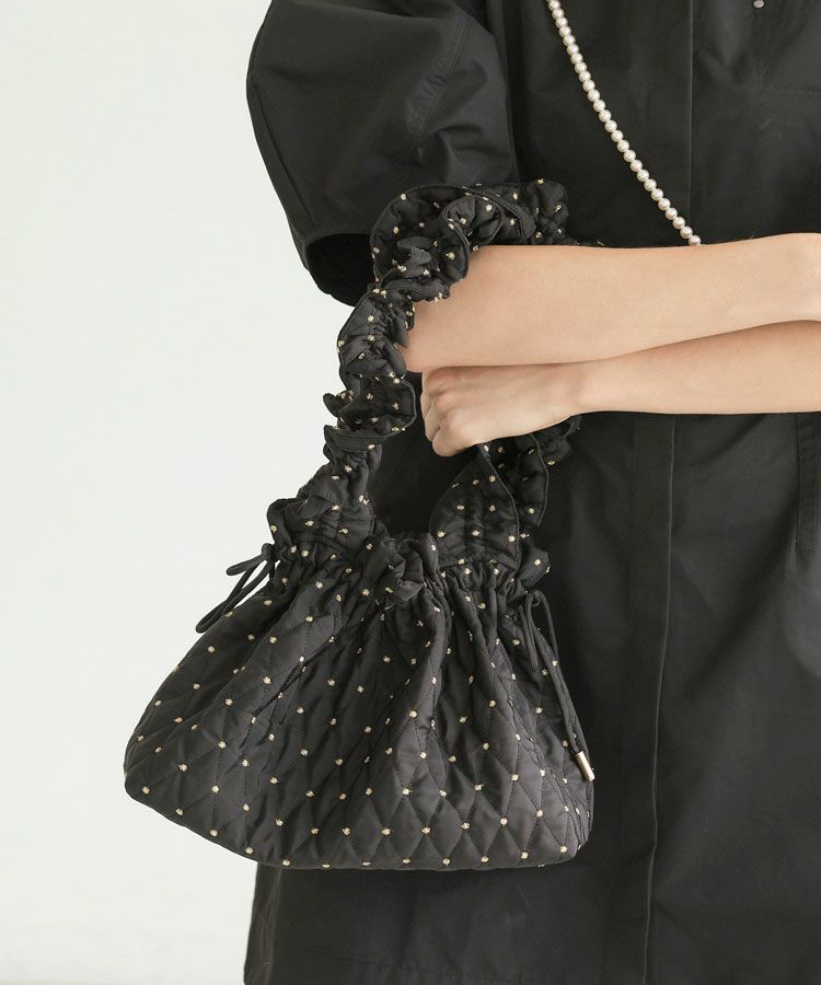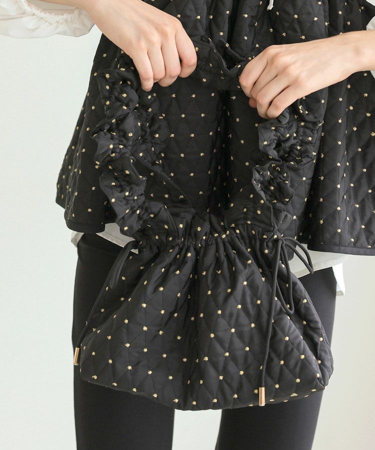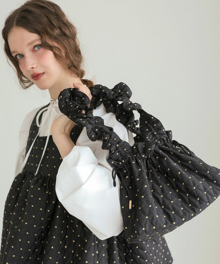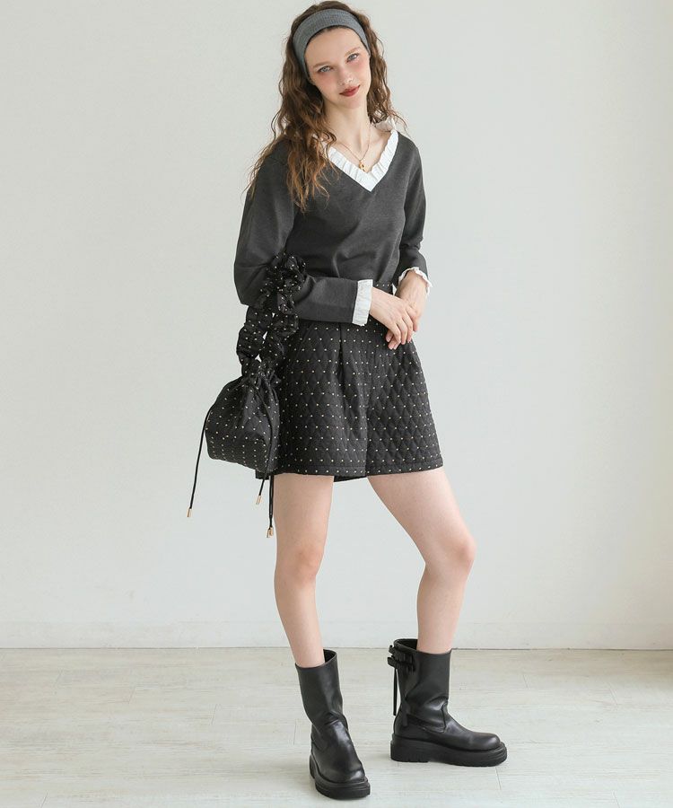 手編みの温もりを感じるホワイトのハンドメイドニットに、ドットキルトパンツの軽やかな表情をプラス。やわらかさと遊び心が程よく調和した、冬のこなれカジュアルスタイルです。