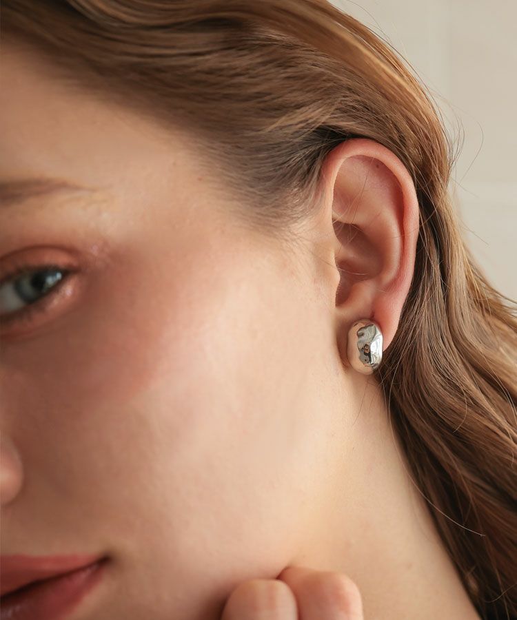 耳元にさりげない存在感を添える、ドロップフォルムのイヤリング。
