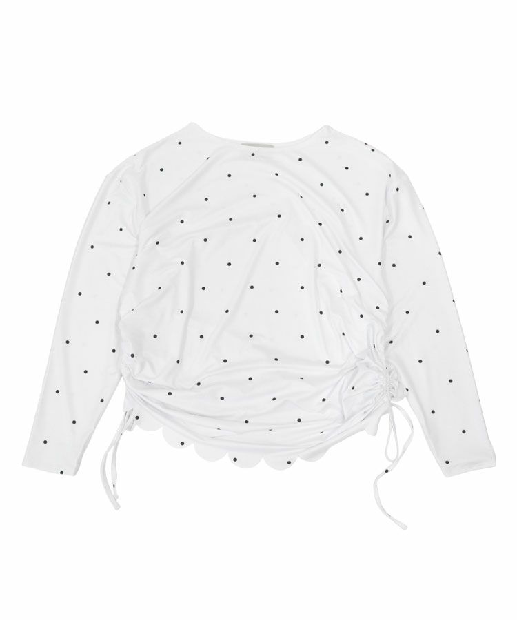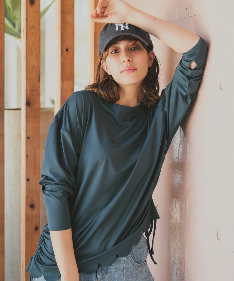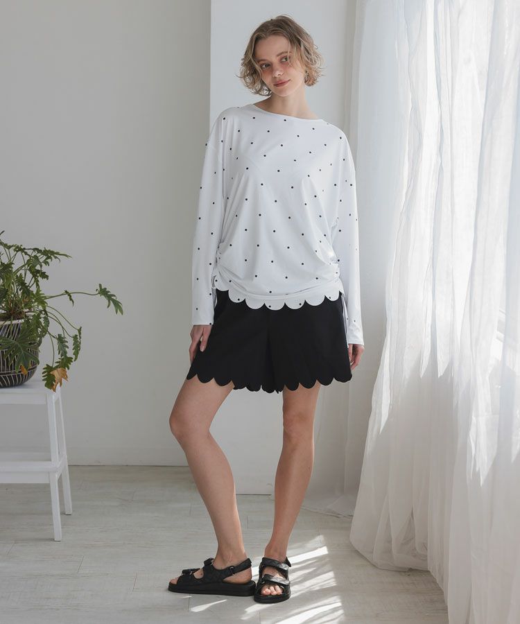 ゆったりとした着心地のドルマントップスは、裾のスカラップデザインがポイントに。
