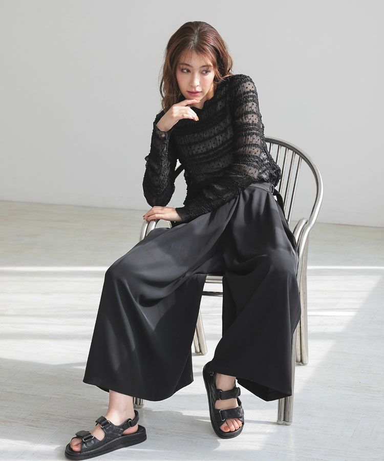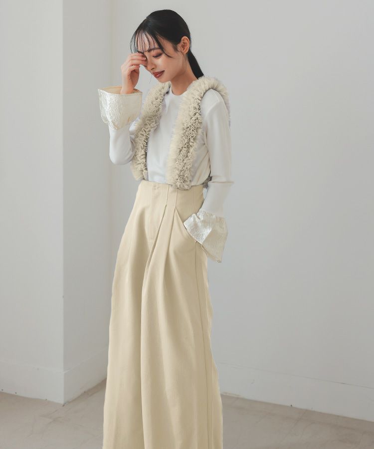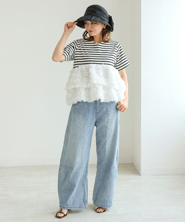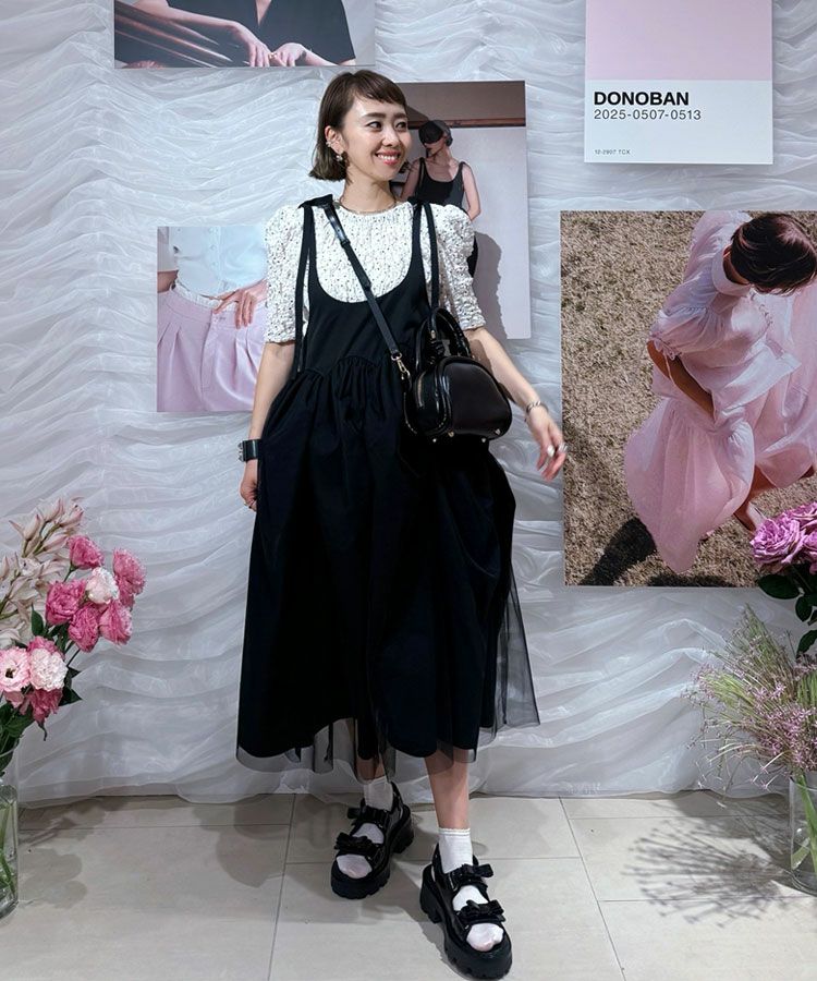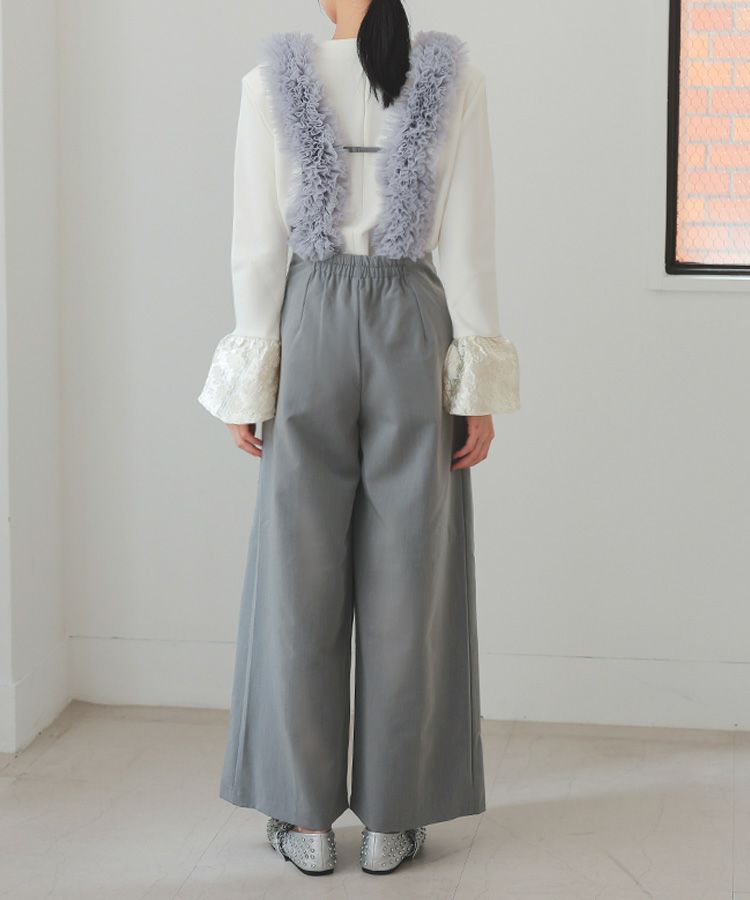 他の画像を見る Donoban 【Maki×Donobanコラボ】 チュールフリルサスペ付きハイウエストワイドパンツ[C] インスタフォロー ¥ 13,200 ¥ 6,600 税込 お気に入りに登録する