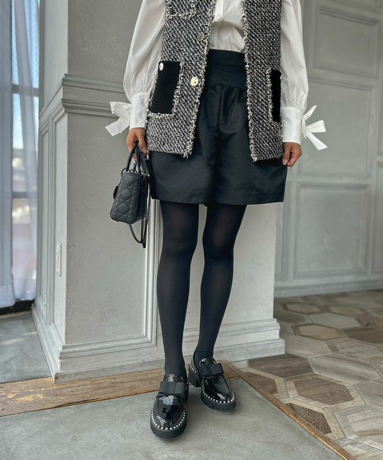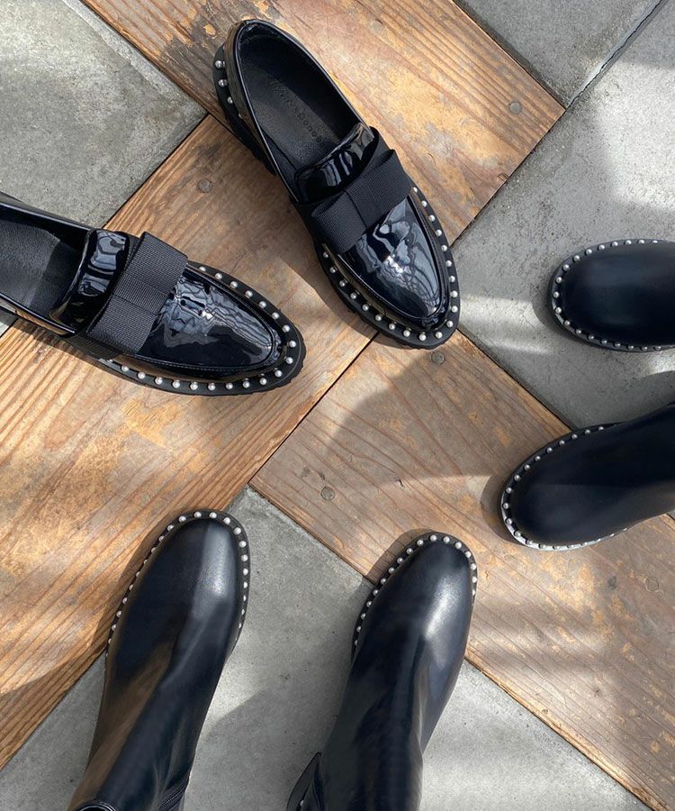 ソール部分には一周施された小さめなパールと、甘すぎないしっかりとした生地のリボンをプラスする事でカジュアルから綺麗めと幅広いスタイリングをお楽しみいただけます。
