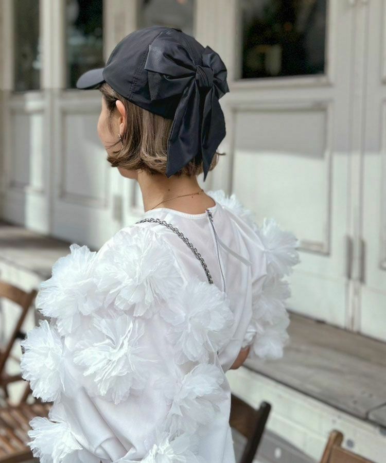 デザインはタウンユースにも使えるメンズライクなキャップですが、大きめなバックリボンが女性らしさをプラスしてくれます。