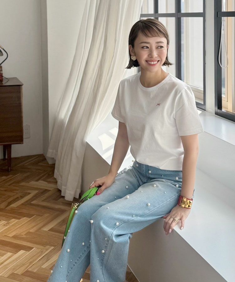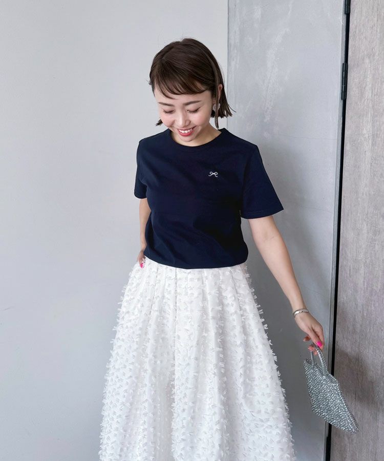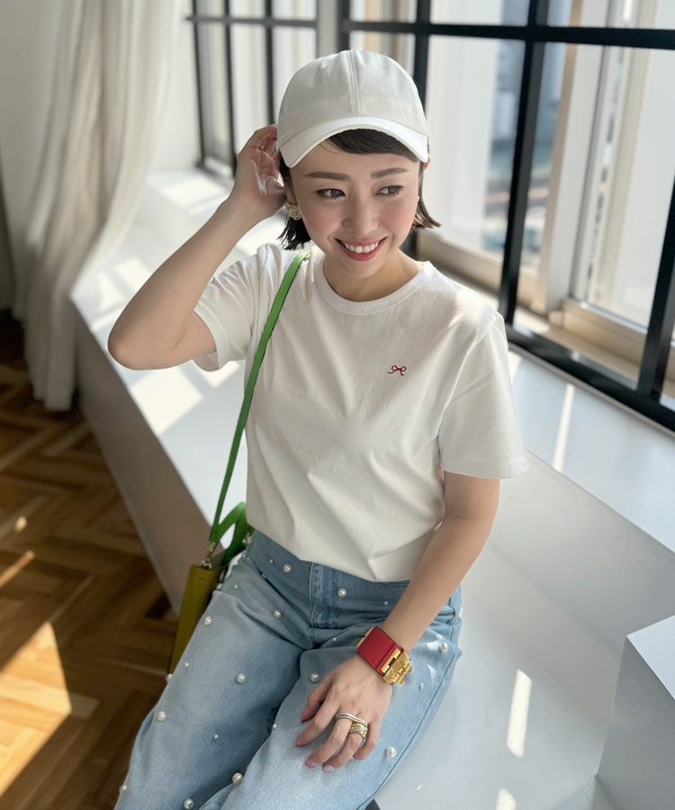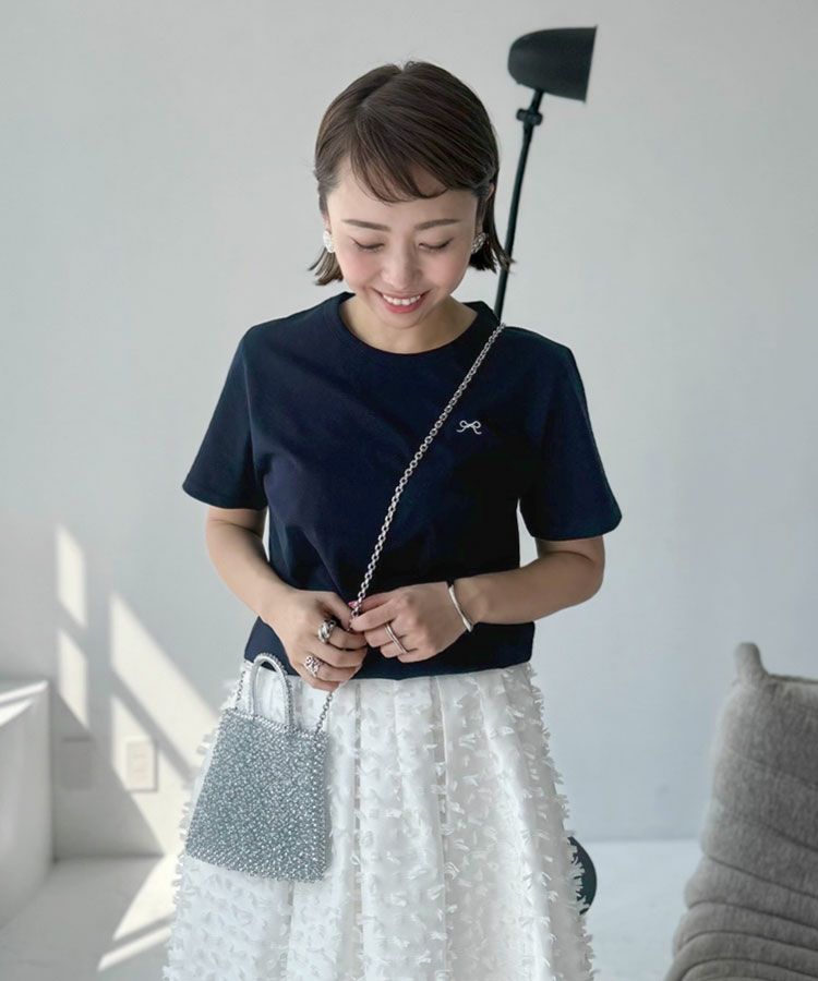 ワンポイントのリボン刺繍がフェミニンに演出してくれます。