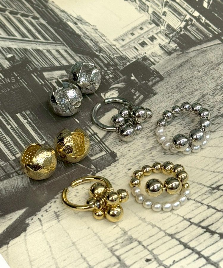 コロンとした丸いフォルムが顔周りを華やかに演出してくれる、ジオメトリックボールピアス。