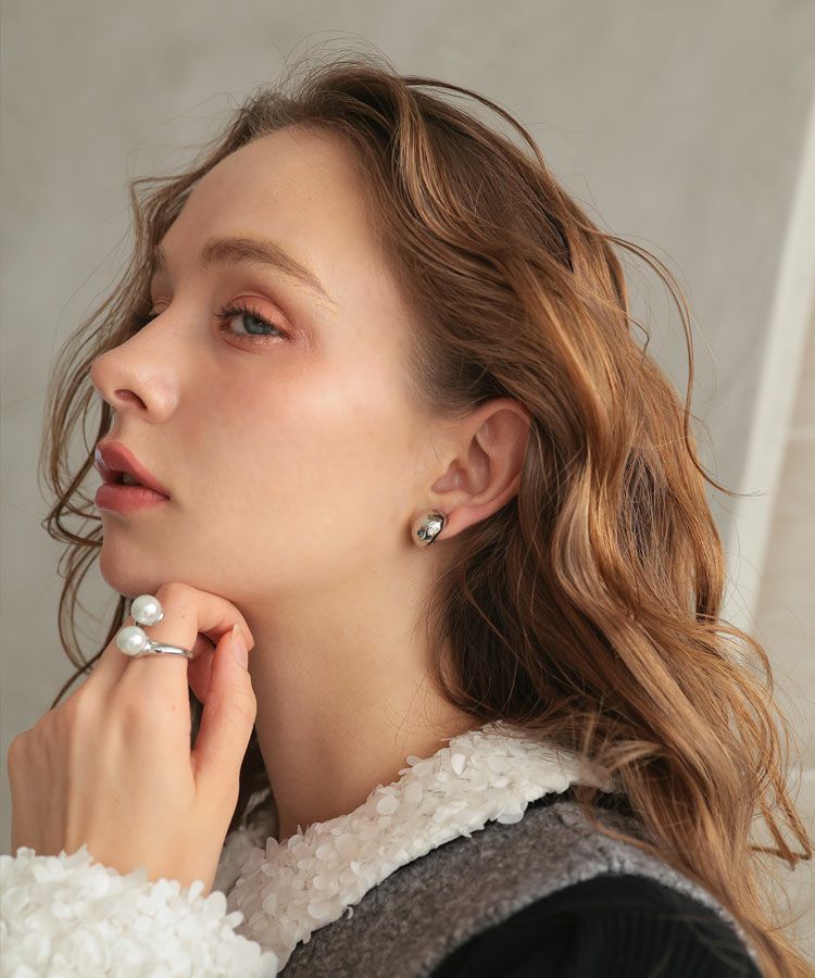 耳元にさりげない存在感を添える、ドロップフォルムのイヤリング。