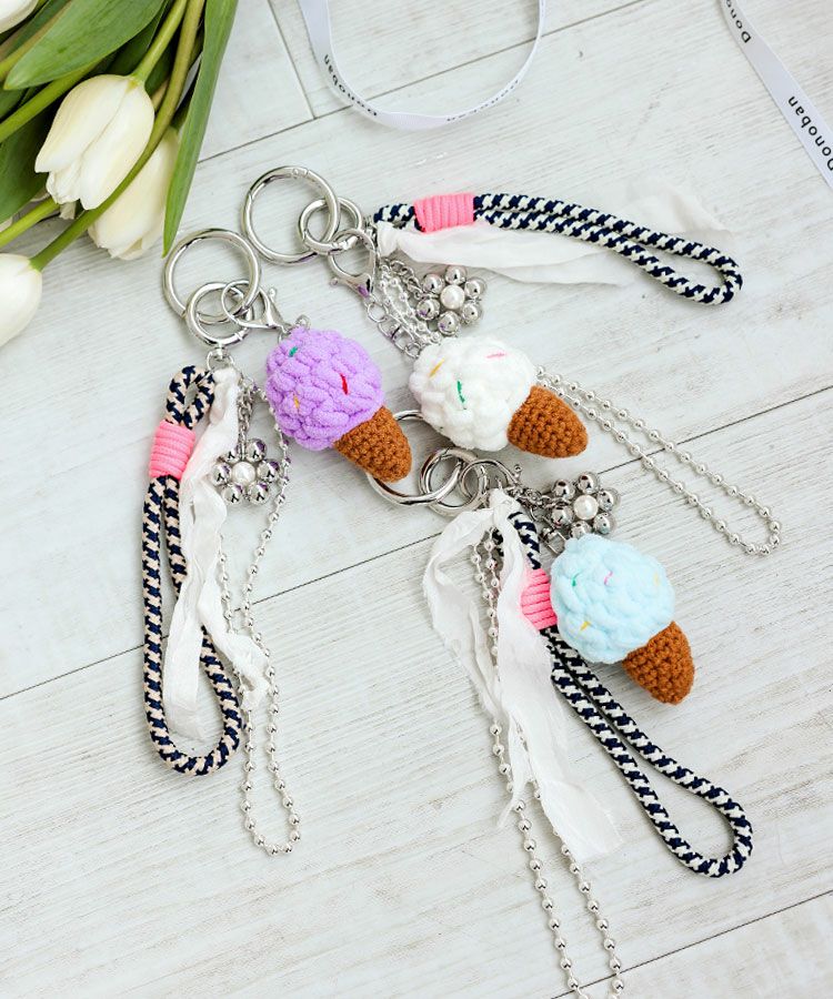 主役のアイスクリームのチャームにシルバーパーツを組み合わせ所々にポップな差しカラーも。