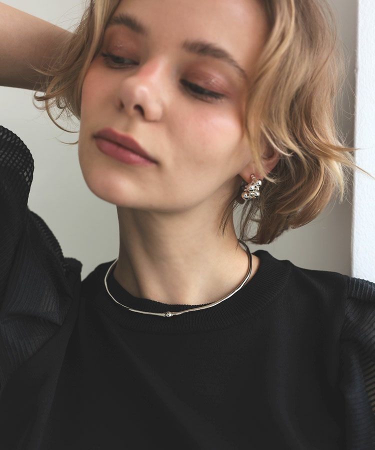 幅広いスタイリングにマッチし、お手持ちのネックレスとの重ね付けも。