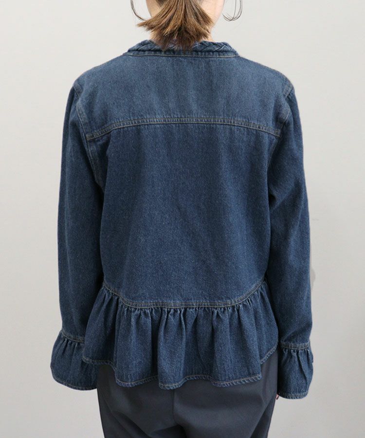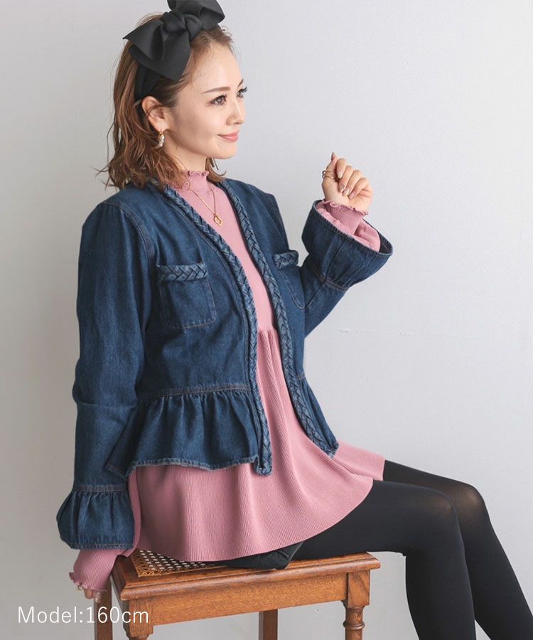 本格的に秋到来。 コラボのデニムジャケットをプラスで夏のスタイリングが一気に旬なコーデに。 ペプラムデザインで腰位置が高く見えるのも好ポイント。