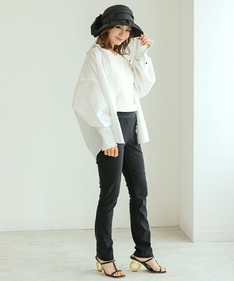 前回、大好評いただいたハットと同様にバックシルエットのポイントのリボンは3層にすることで、どの角度から見ても立体感が出るよう大人可愛く仕立てました。