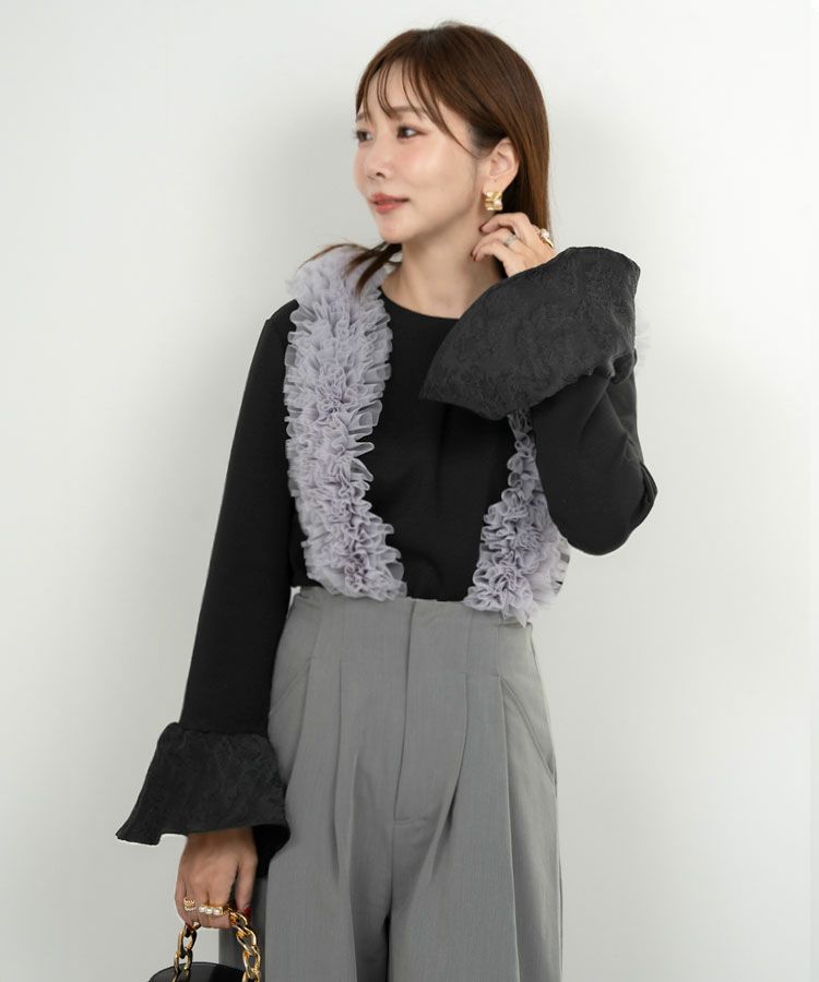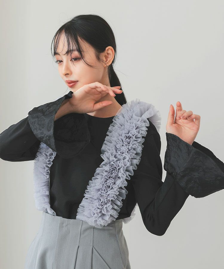 綺麗なラインのワイドパンツにセットのフリルサスペンダーが可愛すぎる!サスペンダーなしでも着用出来るので着回し力は抜群です!お袖がかわいいトップスも暑くなるまでたくさん活用して頂けます!!
