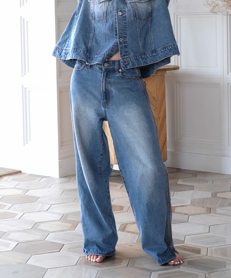 フレアデニムジャケットにストレートデニムのセットアップで私らしい、かっこいいコーデ。ロングパールネックレスを斜めがけして、クールさの中にほんのり女性らしさをプラス。
