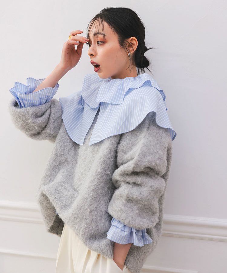 ふわふわカラーニットはピンクに。 昨年から愛用中のミニ丈バルーンスカパン合わせがバランス良きで、今年のヘビロテになりそうな予感。