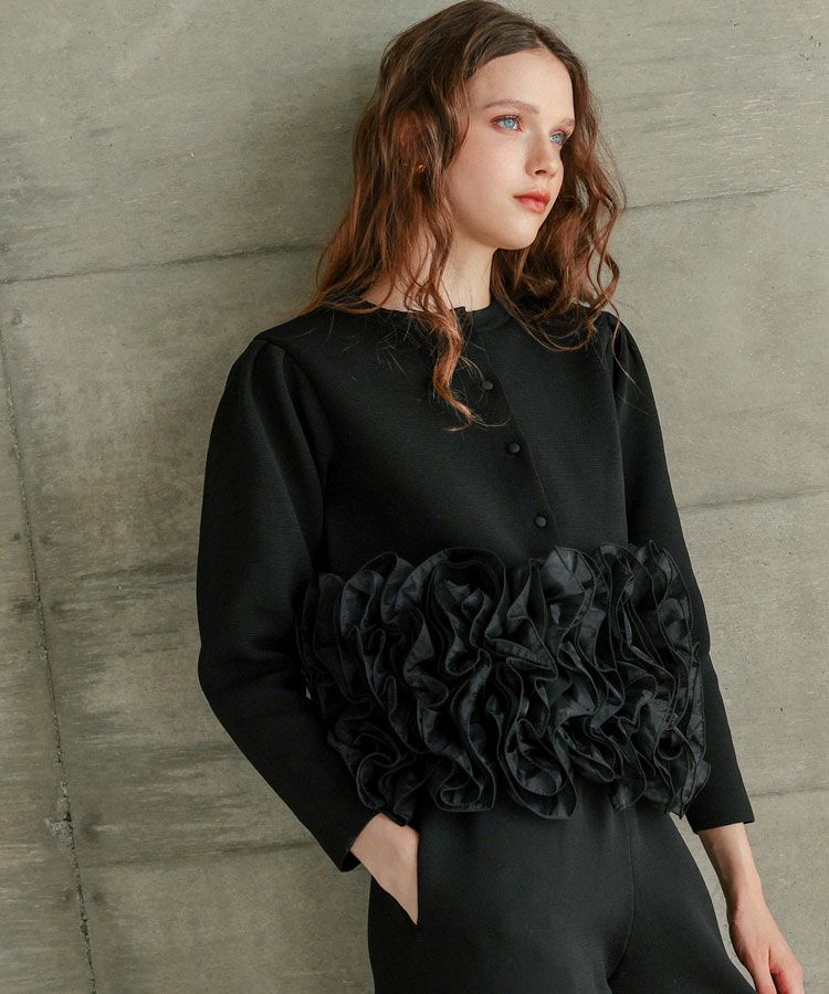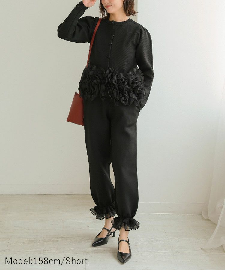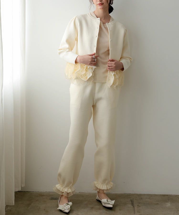 オーガンジーをドッキングさせたフリルがドラマティックで着回し力のあるセットアップ。