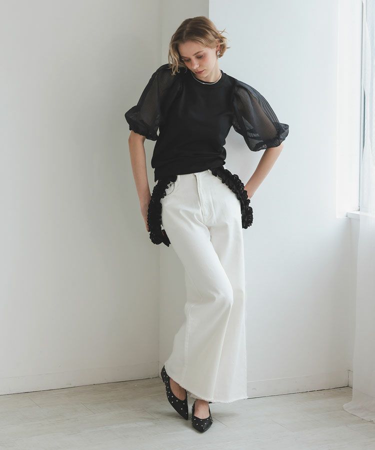 着るだけでコーディネートが仕上がるトップス。袖のボリュームがなんといってもポイント!デニムでカジュアルに。ワンピース、オールインワンのインナー使いも出来るアイテム。