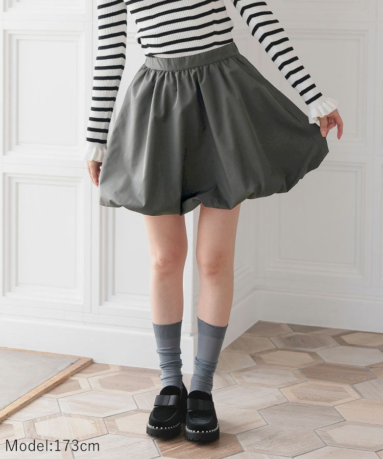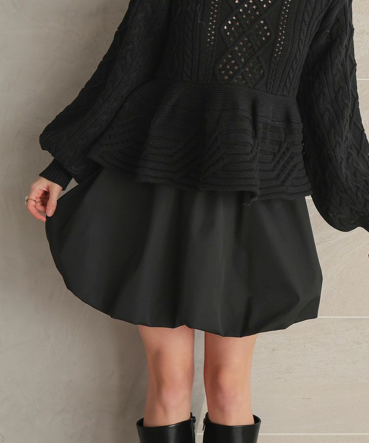 赤のウォッシャブルニットにホワイトのバルーンスカートを合わせ、クリスマスムード漂うコーデに。デイリーにも楽しめる大人可愛いスタイルに。