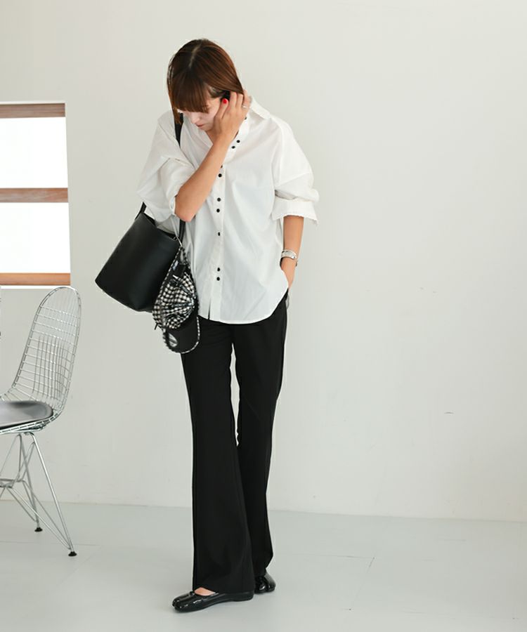 シンプルだからこそシルエットで差をつけたい大人の美脚フレアパンツです。