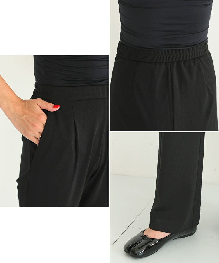 ストレッチの効いたストレスフリーのリラクシーな履き心地はもちろん、オフィスにも通用するきちんと感も叶えるキレイめな生地感。