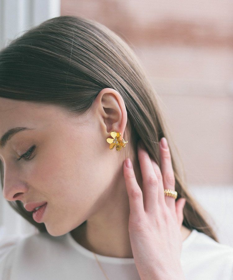 存在感のある大きめなお花のモチーフピアス。