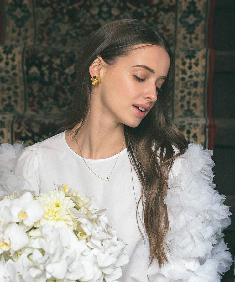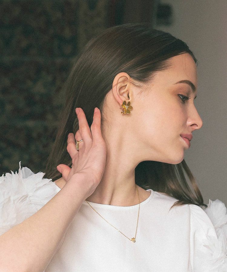 中央のキラッと輝くビジューがポイントで 耳元を華やかに演出します。