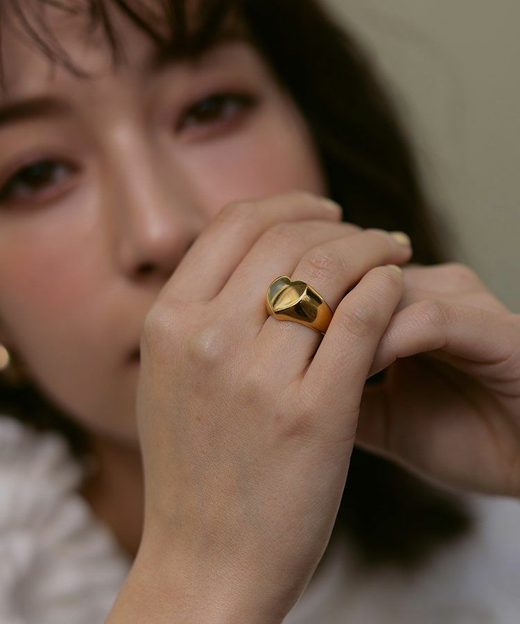 子供っぽくならない大人なハートリングで、どんなコーデにもハマります。