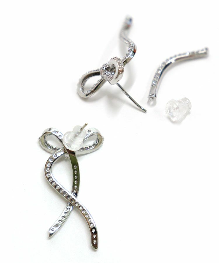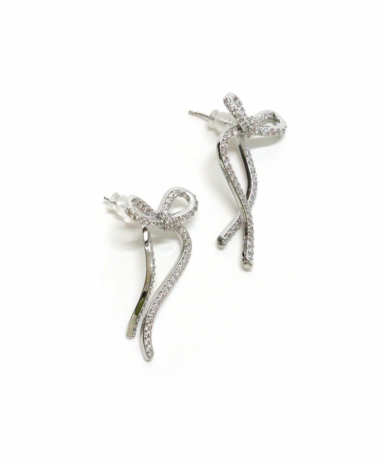 キラキラのビジューをあしらったレディーなシルエットのリボンピアス。