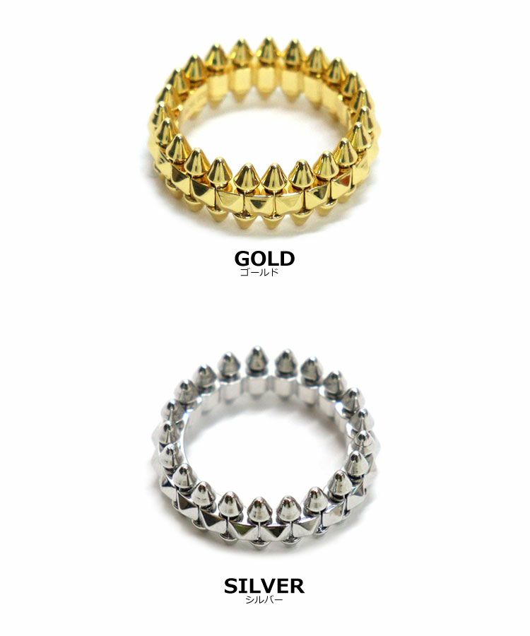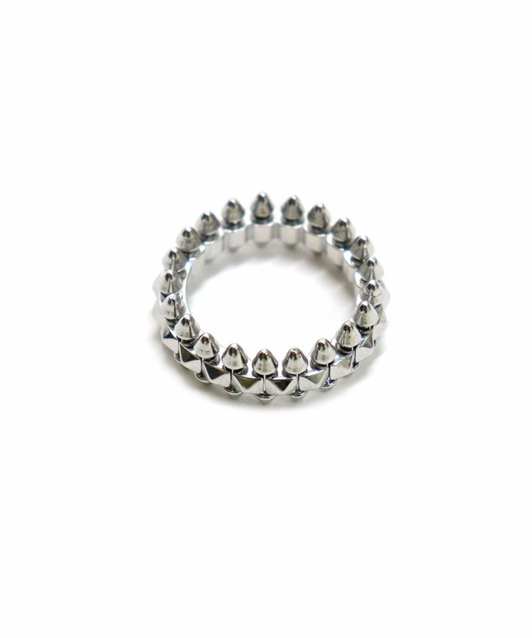 スタッズとトゲトゲが一つになったデザイン性のあるリング。