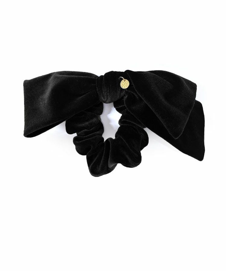 ベロアリボンに、小さめなゴールドチャームが揺れるシュシュ。