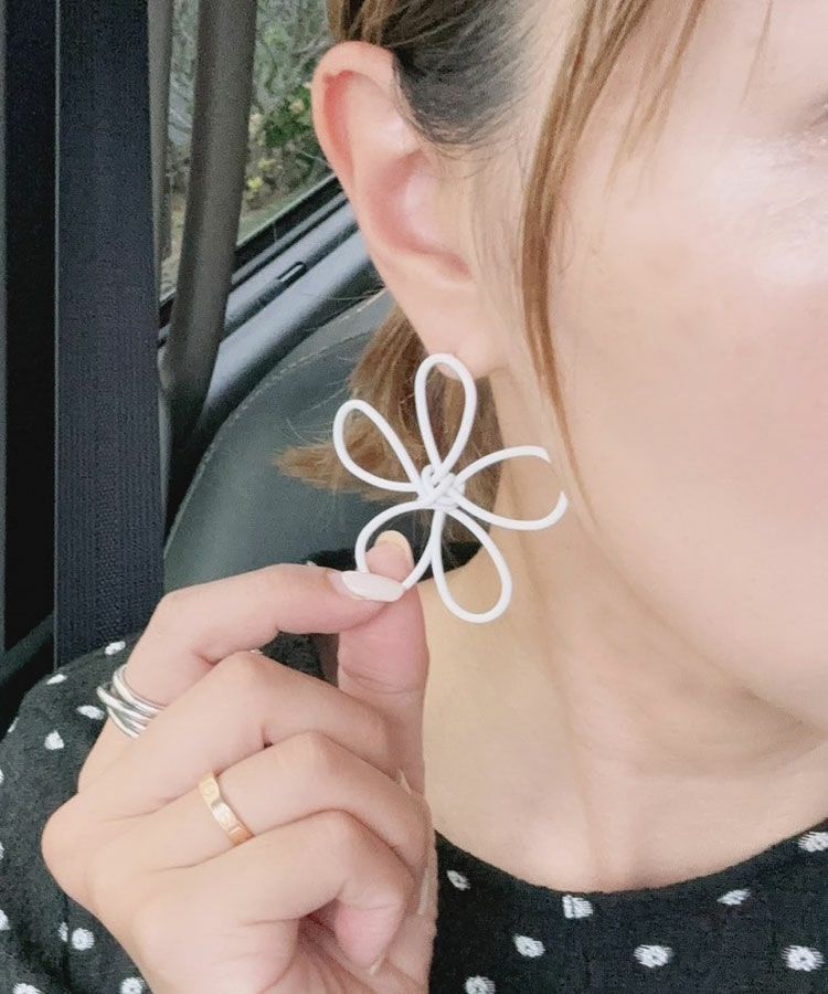 一目惚れしたお花ピアス。夏らしくホワイトを購入しました!大ぶりピアスが好きなので、シンプルな洋服でもポイントになって愛用してます。
