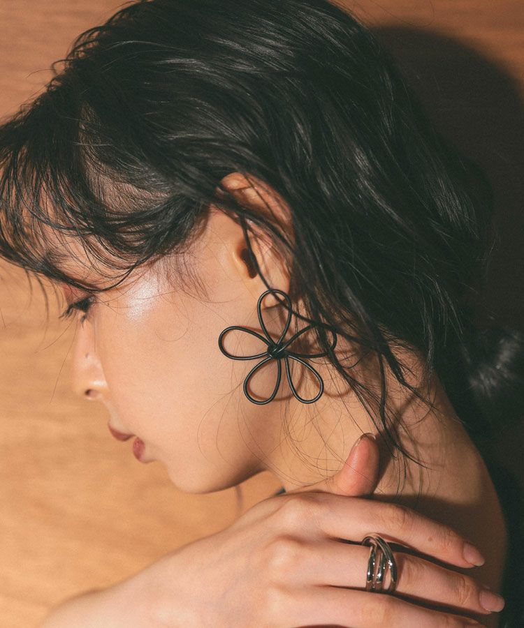 シンプルなコーデのポイントにおすすめの大きめなお花ピアス。