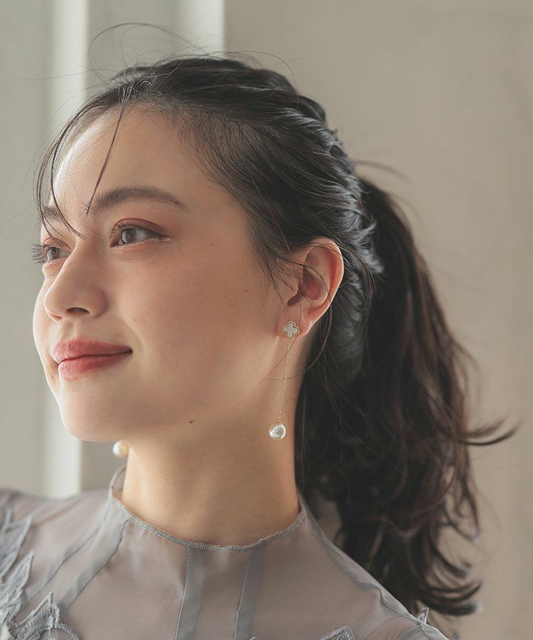 揺れるパールのキャッチとセットになり、 存在感がありながら お顔も華やかに魅せてくれます。