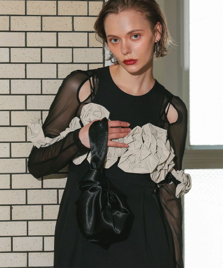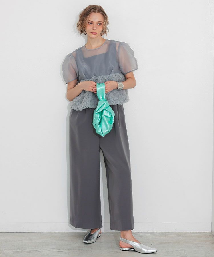 セレクトブランドANDRESDのチュールトップスとバッグをカラーリンクさせてみました。 どちらもオケージョンにも使えるアイテムですが、普段にカジュアルダウンさせてもかわいいです。