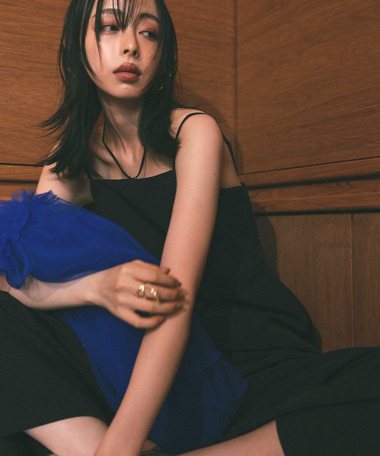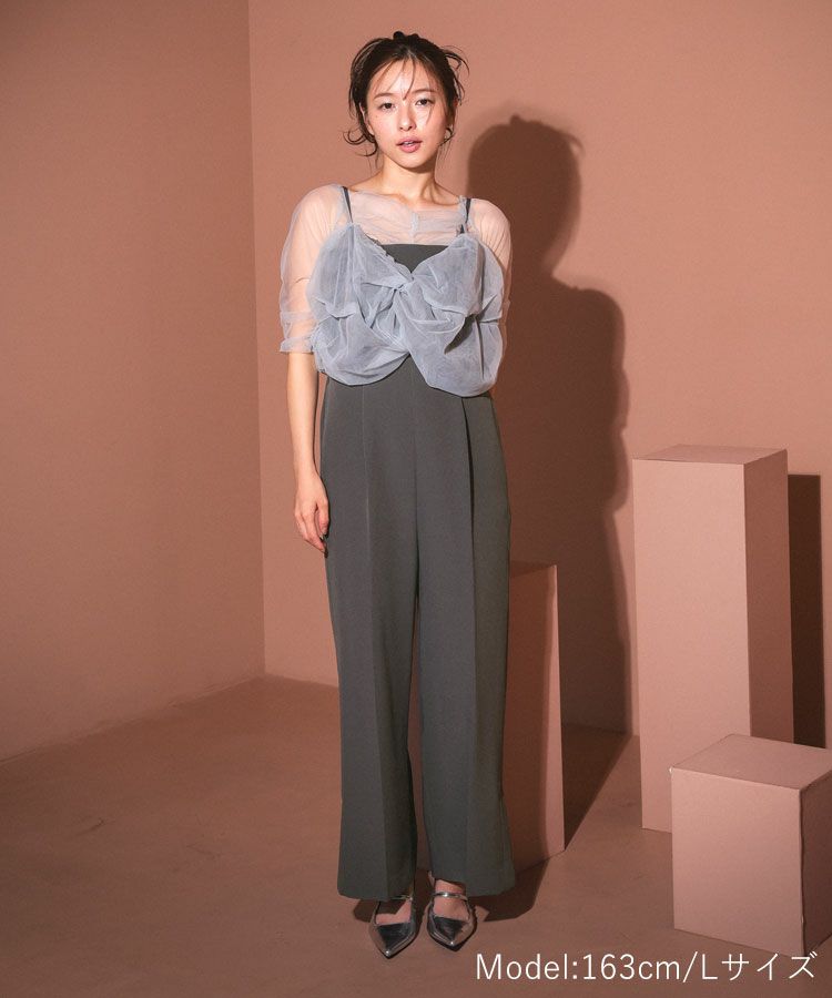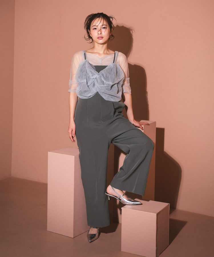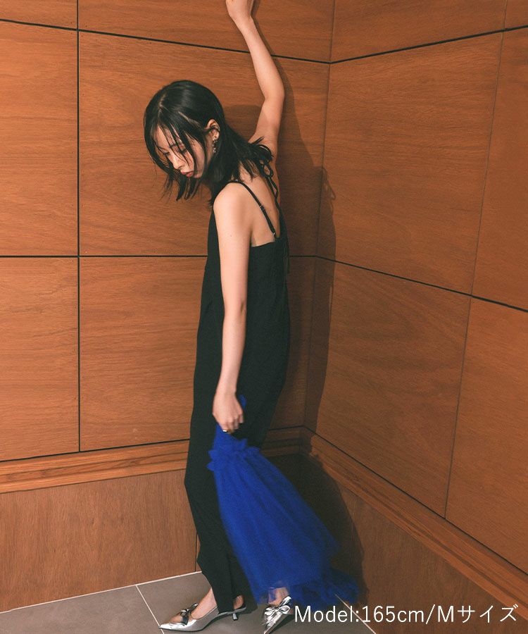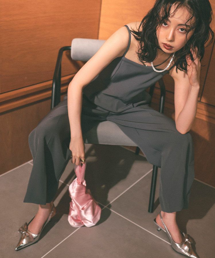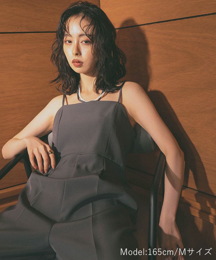 さらりとした肌あたりの、ダブルクロス生地で仕立てたキャミソールオールインワン。