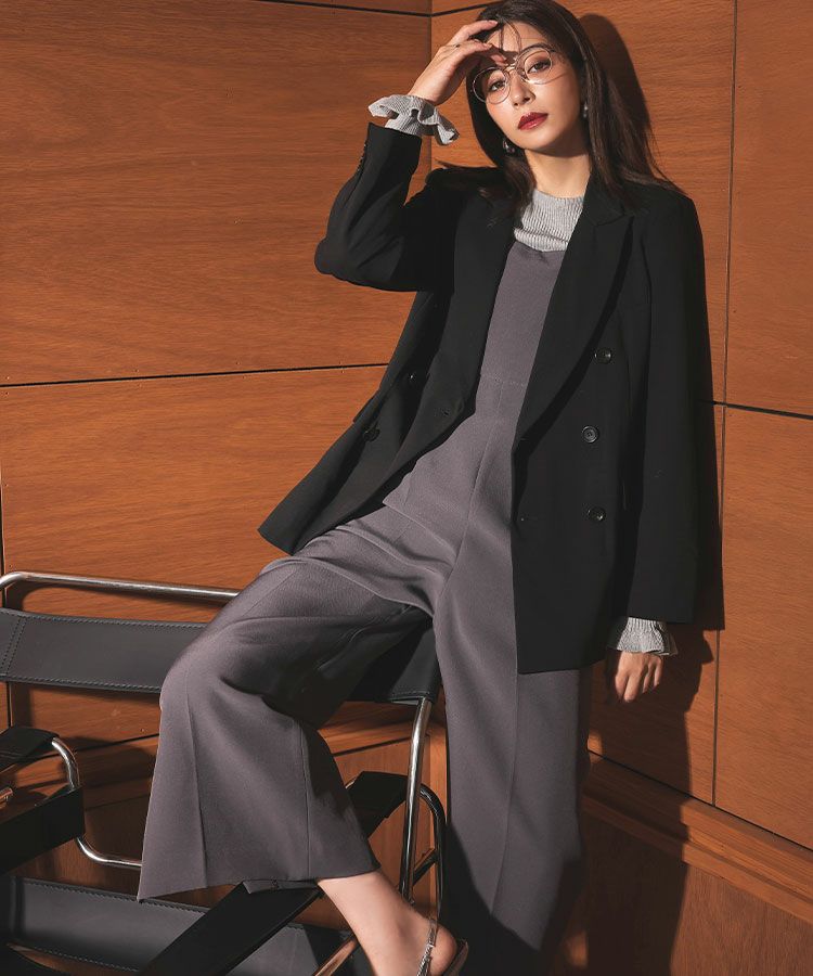 カジュアルシーンでは、フィットシルエットのカットソーをインナーにしたり、ショート丈のベストとのスタイリングもお洒落なスタイルに。