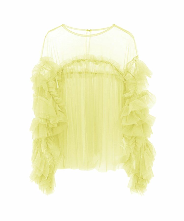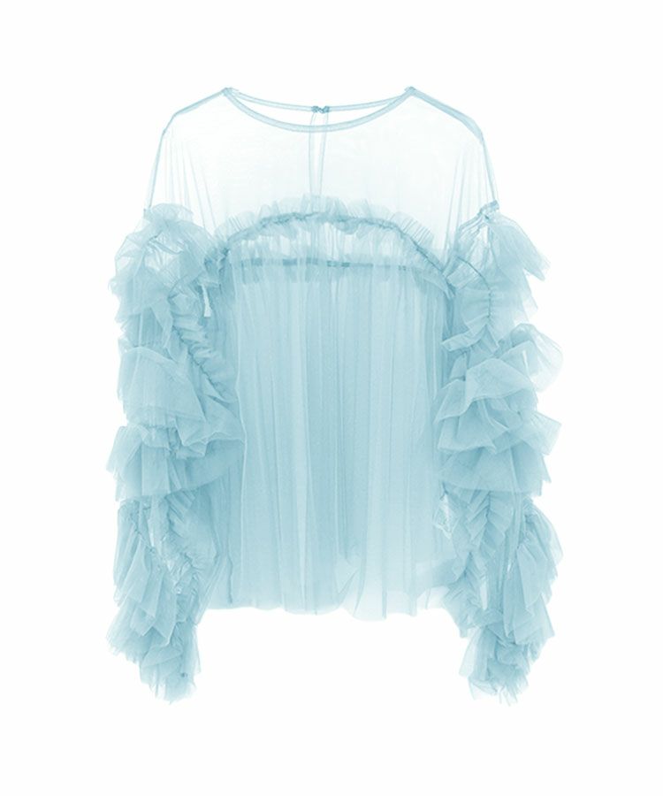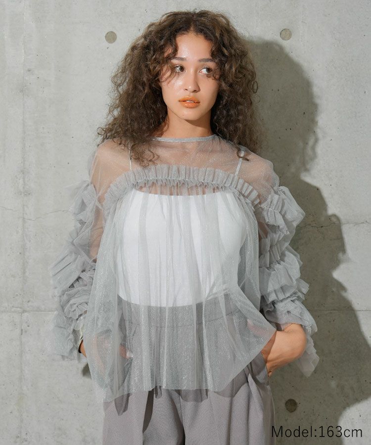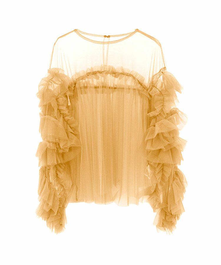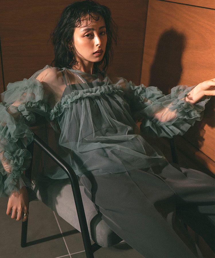 セレクトブランドのANDRESDのチュールトップスをカジュアルダウン。 シンプルコーデにプラスするだけで華やかに。 晩夏にもぴったりのアイテムです。