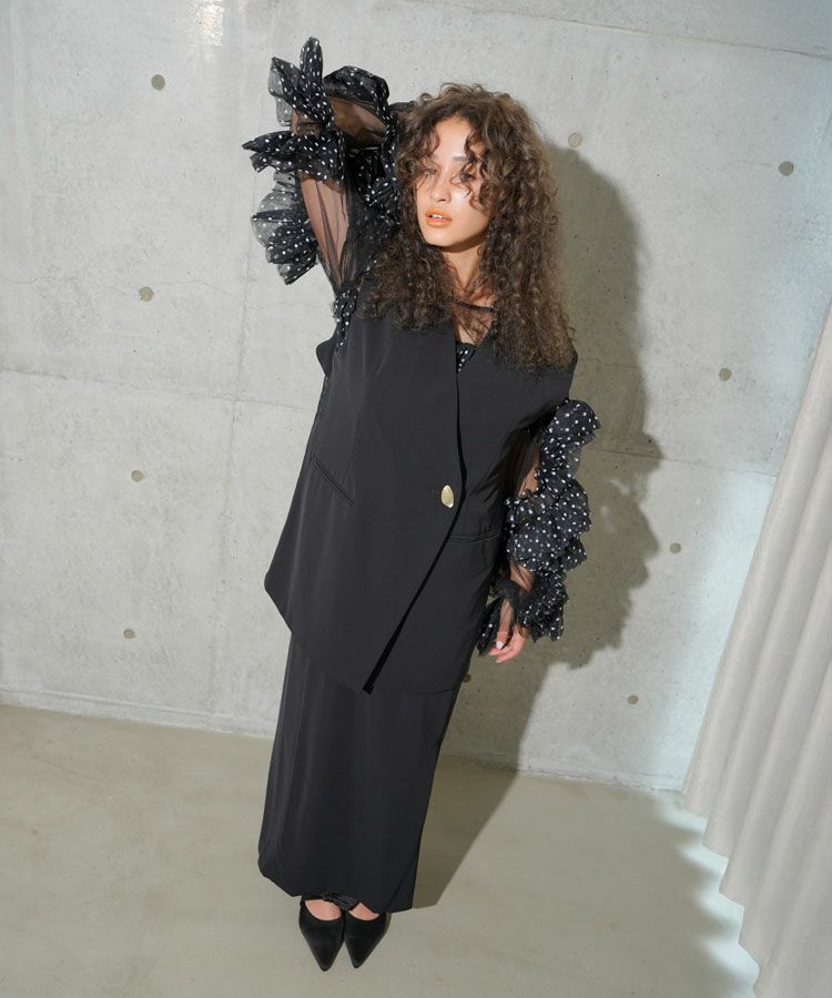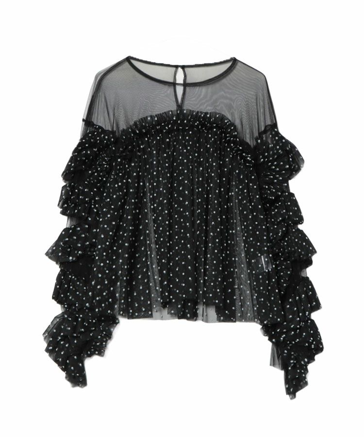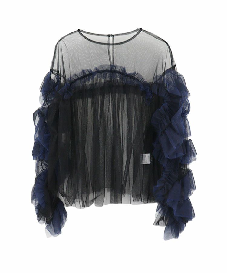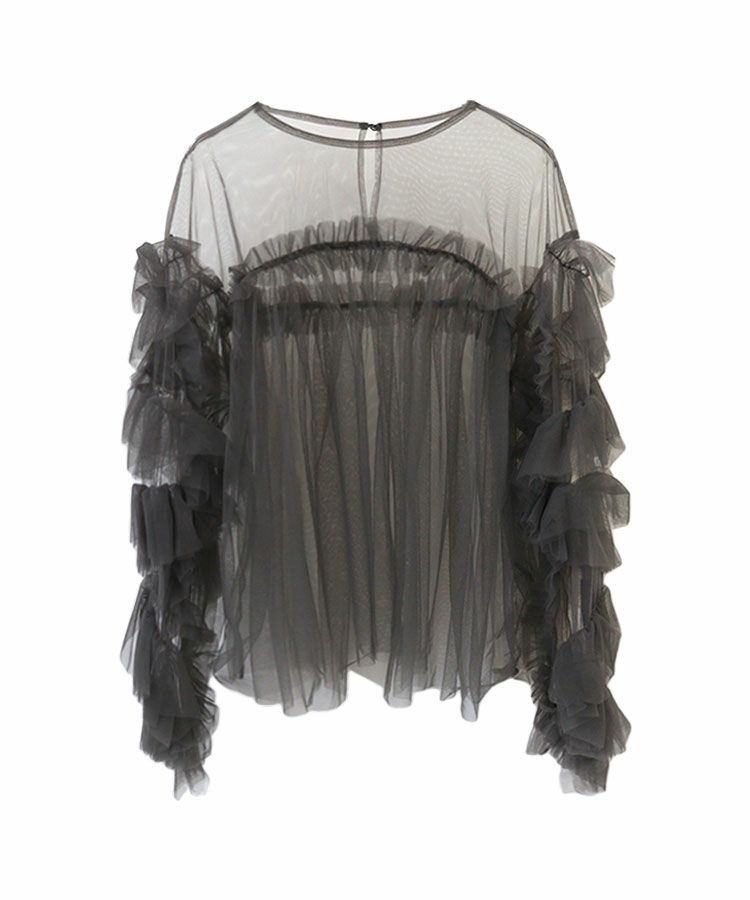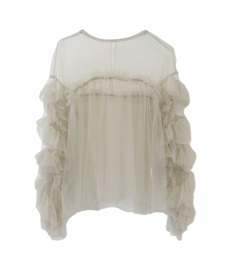 セレクトブランドのANDRESDのチュールトップスをカジュアルダウン。 シンプルコーデにプラスするだけで華やかに。 晩夏にもぴったりのアイテムです。