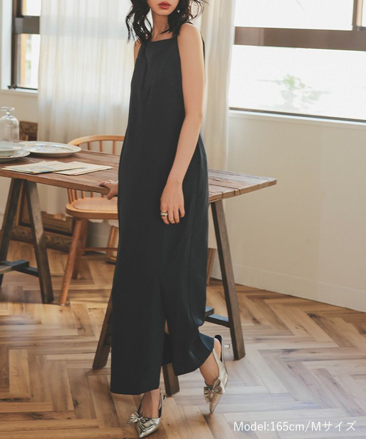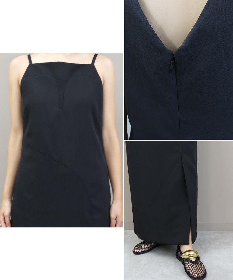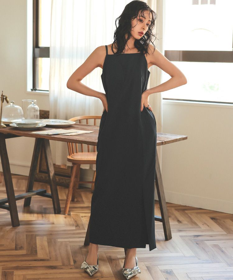 フロントに描いたcutting curve lineがアイコニックなスクエアネックのキャミドレス。