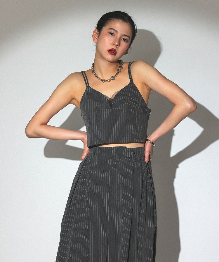 ビスチェは肩紐をクロスさせたり、丸カンに結んで垂らしたりと、アレンジ次第で着こなしに変化をつけられます。
