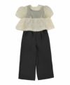 トップスはバスト下で切り替え、タックを巧みに入れたフリルたっぷりのペプラムが印象的。