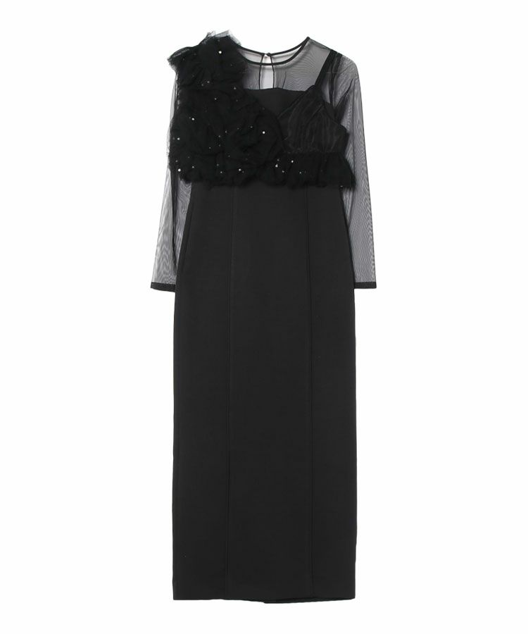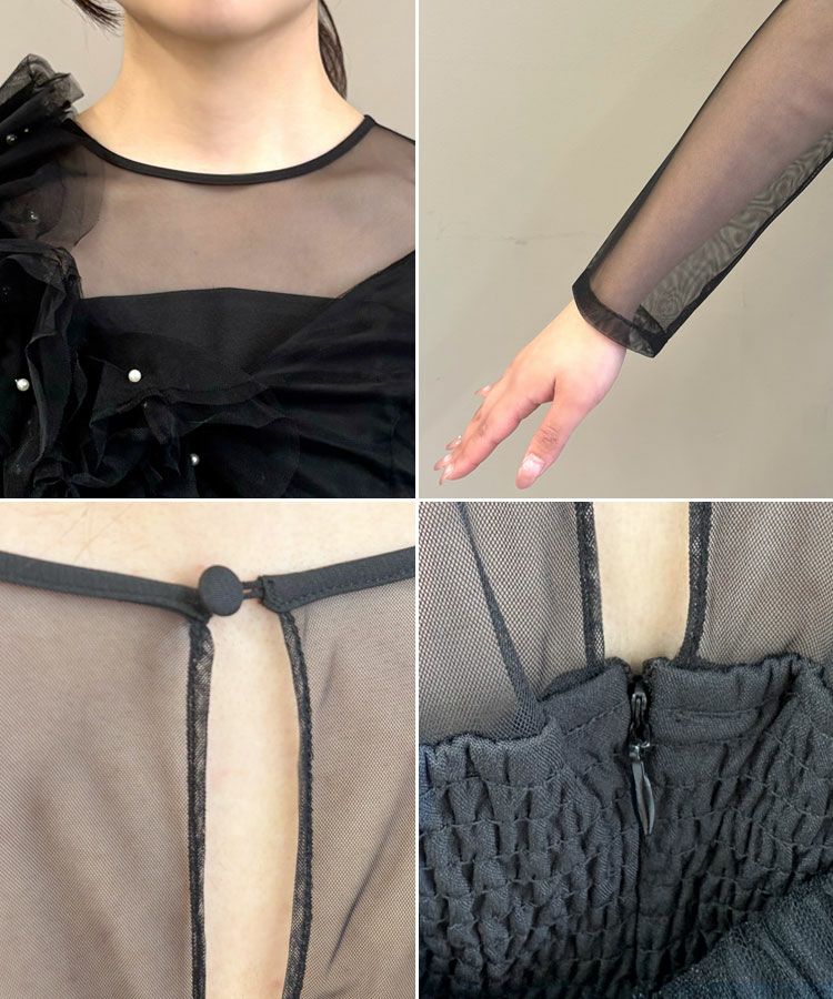 透け感:あり(ビスチェ)、ワンピース:デコルテ-袖