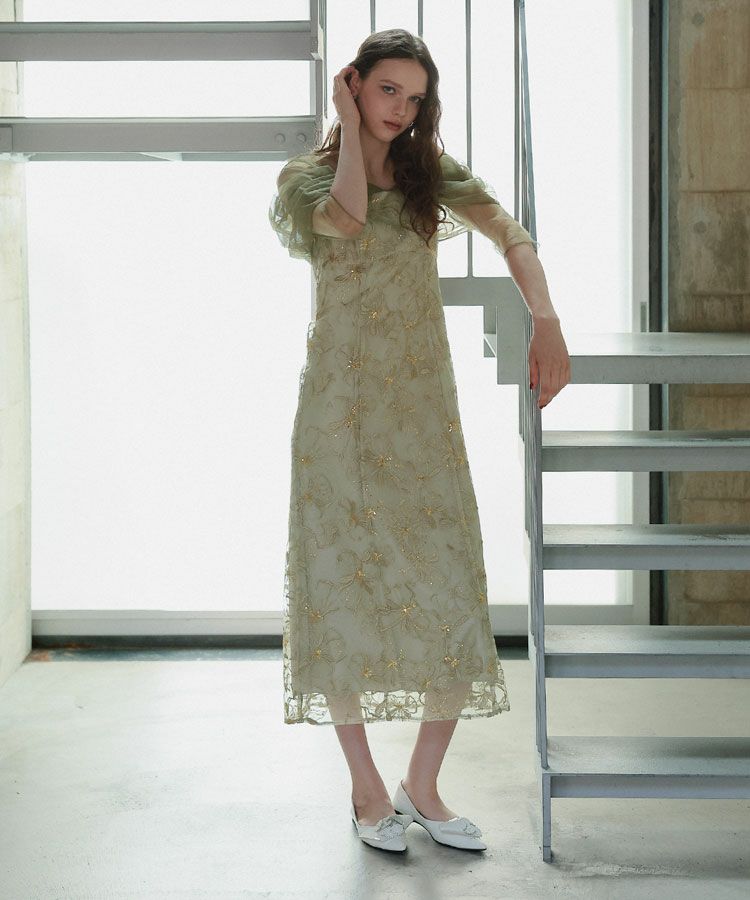 スパンコールの煌めきが目を惹くドレッシーな1着。